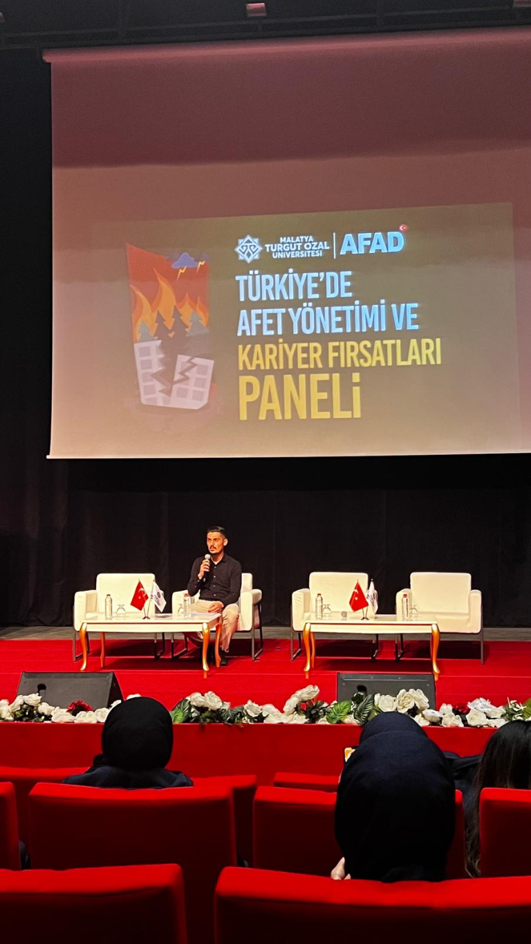 Acil Yardım ve Afet Yönetimi Bölümü hocalarımızdan Dr. Öğr. Üyesi Ömer DEMİRBİLEK moderatörlüğünde ve Düzenleme Kurulu olarak Bölüm Başkanı Doç. Dr. Gürkan KAPIKIRAN, Doç. Dr. Fatma KIZILKAYA ve Dr. Öğr. Üyesi Mert KARTAL'ın öncülüğünde Türkiyede Afet Yönetimi ve Kariyer Fırsatları Paneli hazırlandı. Panele Afad Malatya İl Müdürü Ali ALTINDAL ve Afad Malatya İl Müdürlüğü Eğitim Şube Müdürü Emre ALTUNTAŞ'ın katılımıyla gerçekleştirildi.